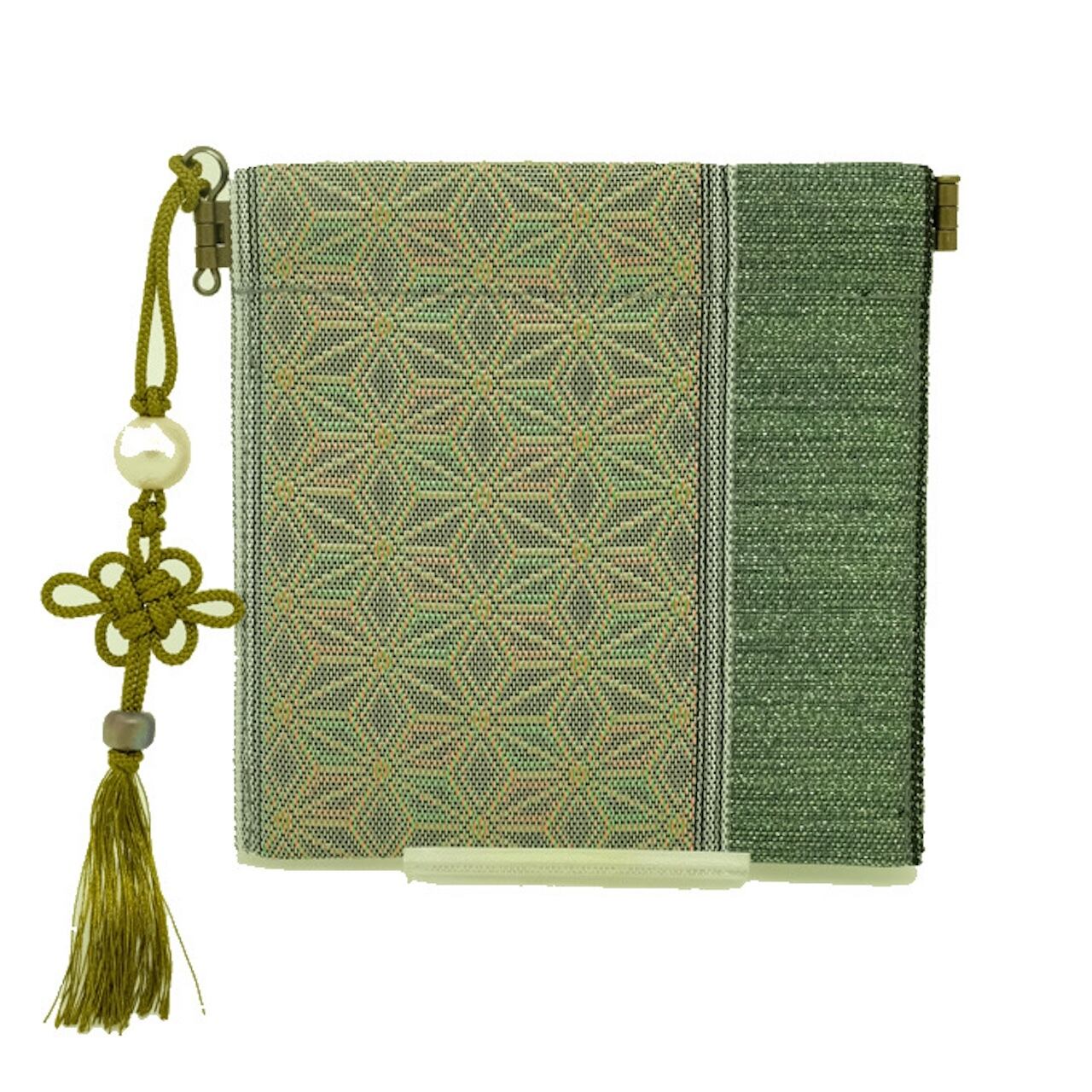 タタミのヘリでできているので、蒸れに強く、薄くすべりもよいので出し入れがしやすいです。襟に挟んでも、襟元が崩れる心配がありません。